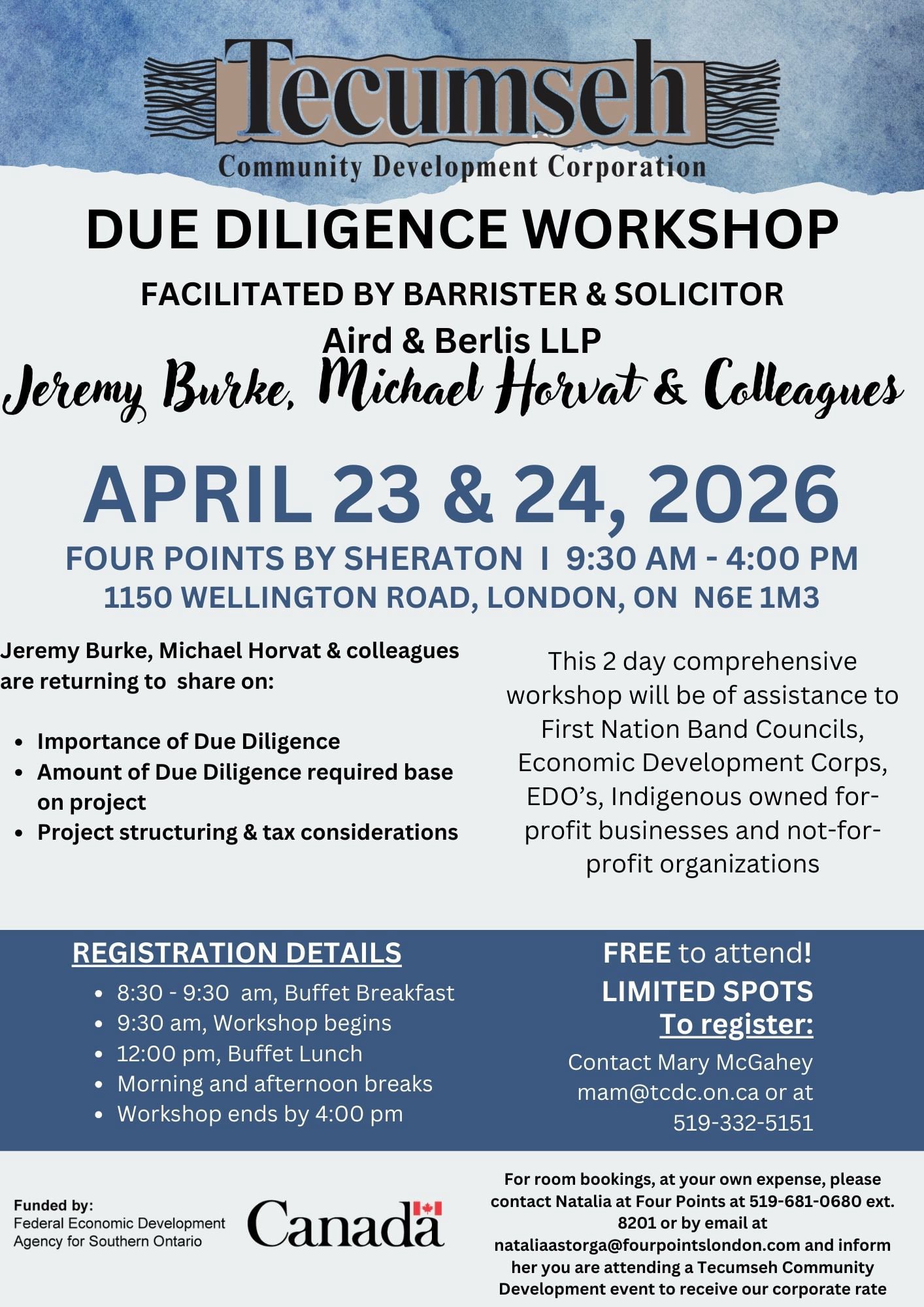 Webinars & Training Tecumseh CDC: Due Diligence Workshop April 23, 2026, 9:30 am to April 24, 2026, 4:00 pmInperson SHARE